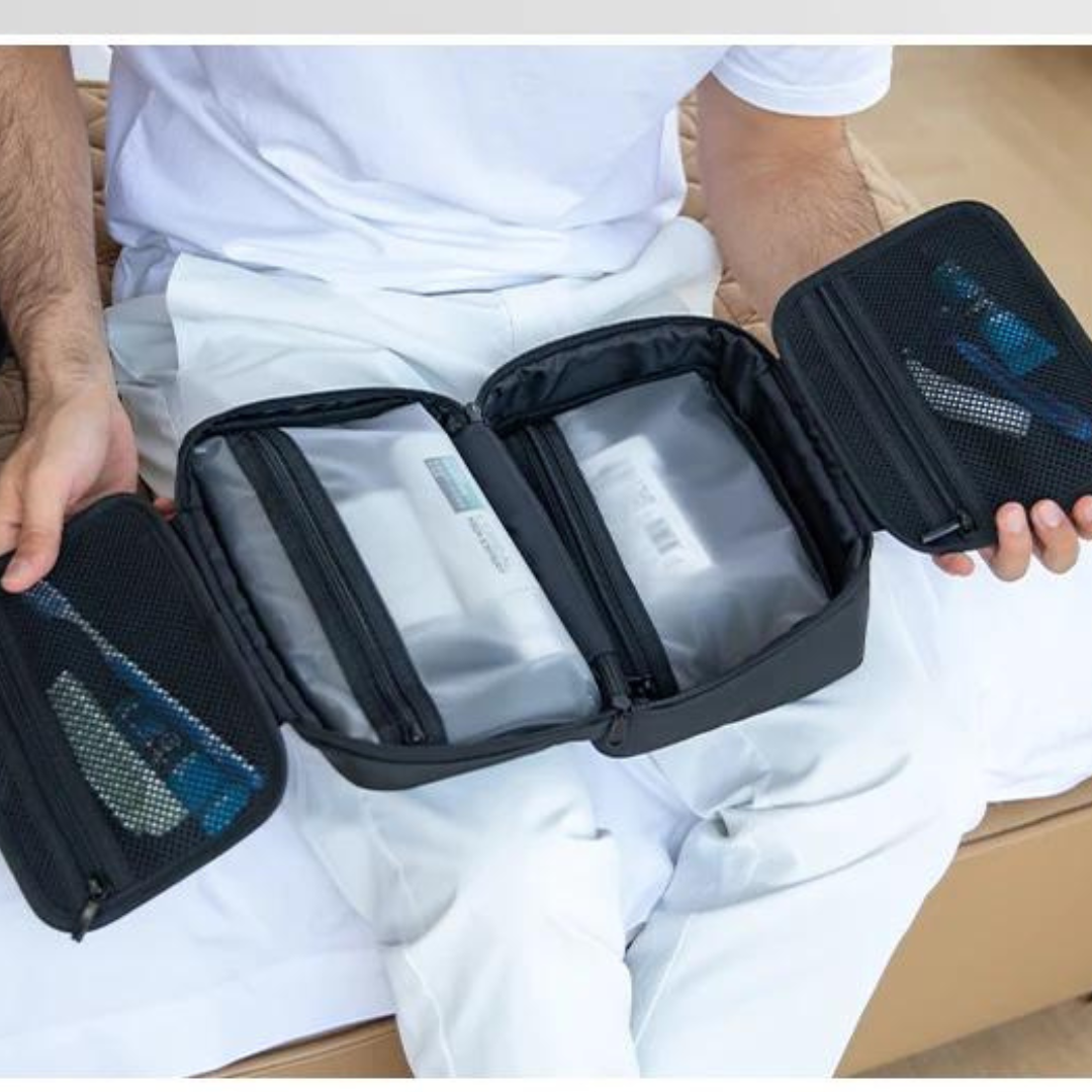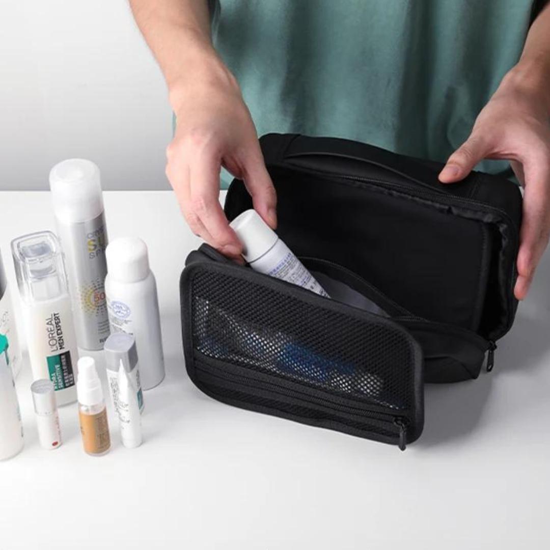 Made with high-quality materials, the Necessaire is completely waterproof, protecting your belongings from splashes and moisture. With multiple internal compartments and generous storage space, this Necessaire offers unparalleled convenience for organizing your hygiene products, cosmetics, and travel accessories. Despite its generous storage space, the Ocean Drive men's Necessaire is compact and portable, ideal for both short and long trips.